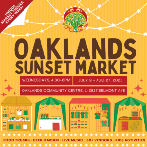 The Oaklands Sunset Market is a beloved community tradition, lighting up Wednesday evenings in July and August at the Oaklands Community Centre. Each week, the market brings people together with a lively mix of food trucks, live music, a local beer garden, kids’ activities, and over 30 local vendors offering everything from fresh produce to handmade goods.